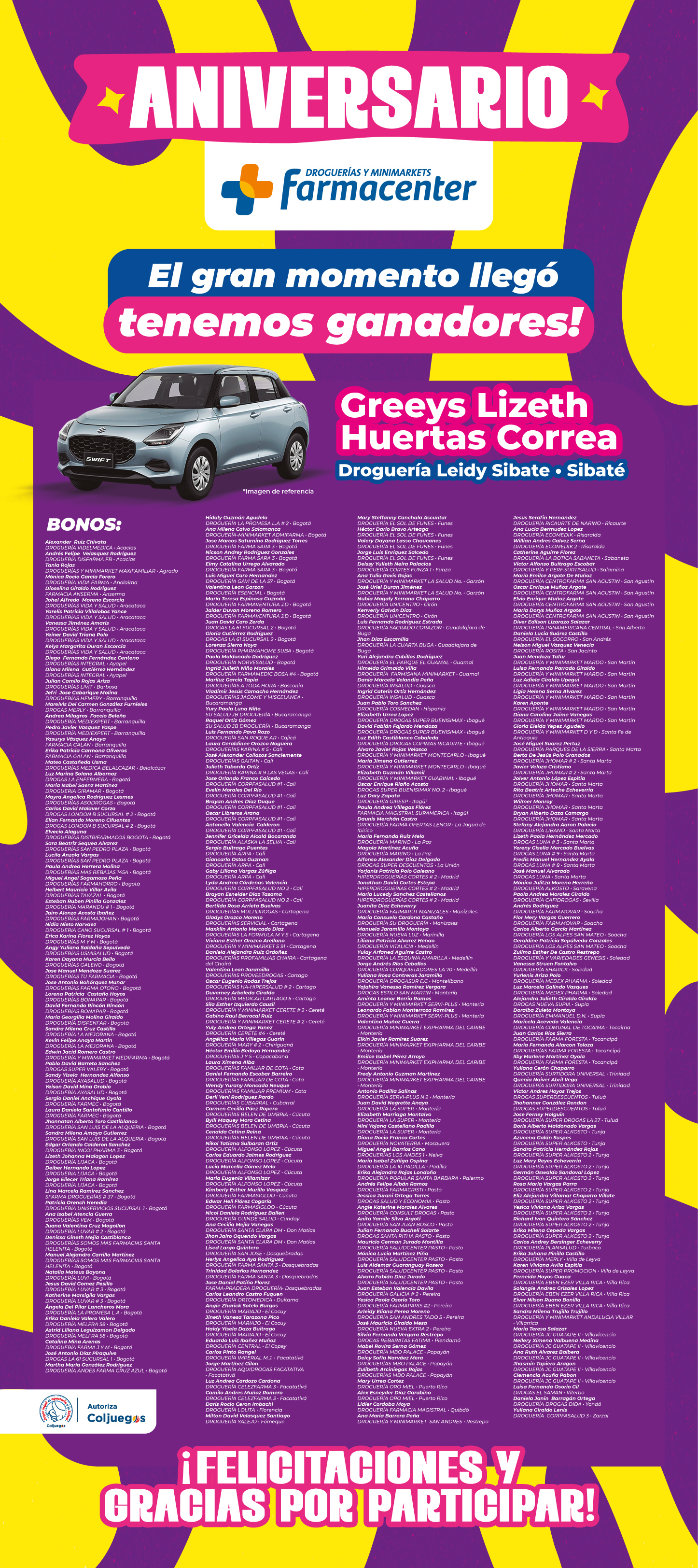 Ganadores Bonos Aniversario